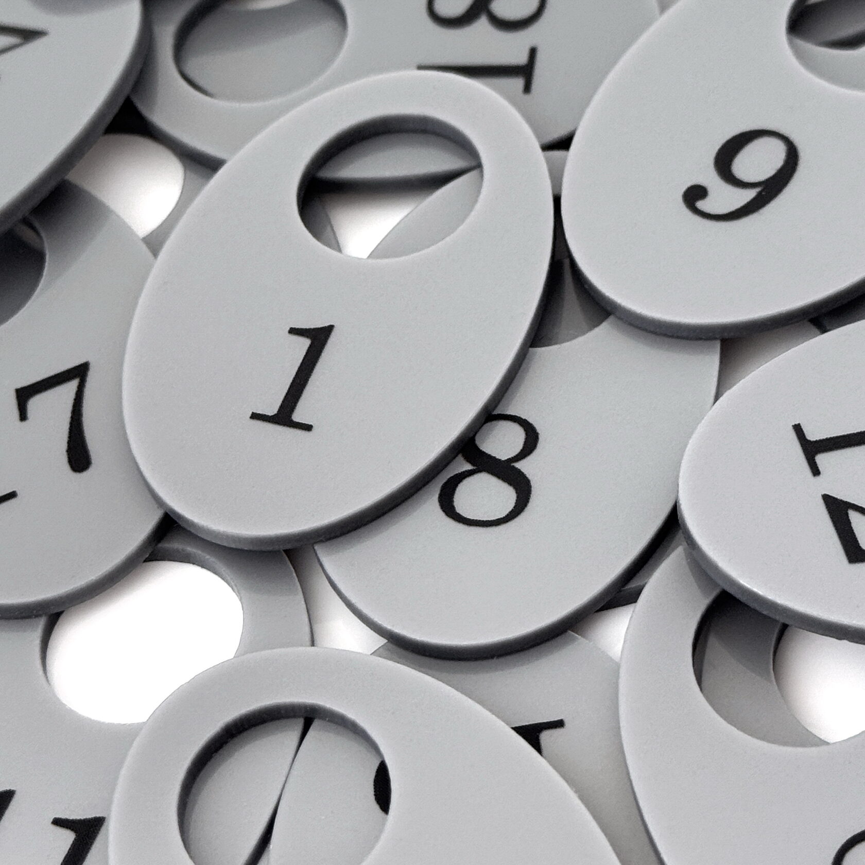 Номерки изготавливаются из литого акрилового пластика ведущих европейских производителей, толщиной 2,7мм, с глянцевой поверхностью. Эстетично выглядят, приятные на ощупь.